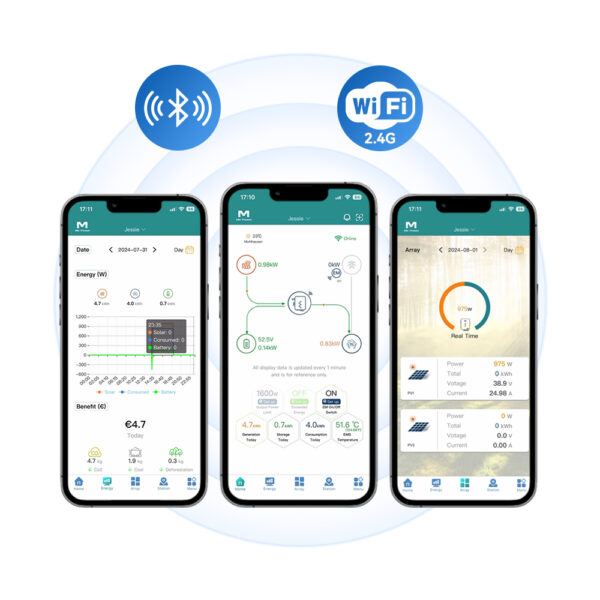 - Patogus stebėjimas: Savo telefone matykite, kiek energijos pagamina moduliai, kiek jos yra akumuliatoriuje ir kiek suvartojate.